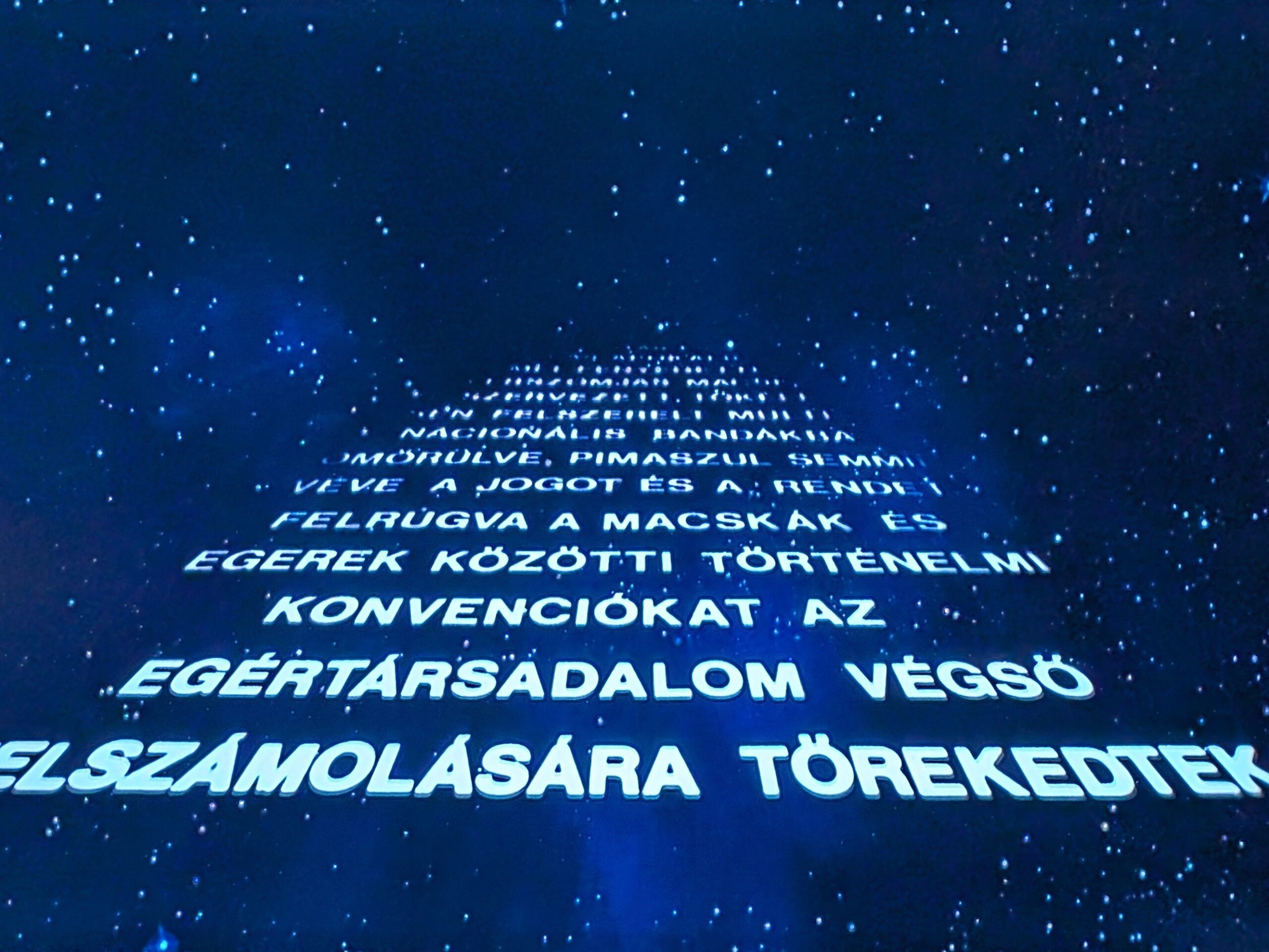 This is from October so I don’t remember too well. The cats and the rats have teamed up against the mice. There’s a lot of incompetent mafia action told in the style of a cheap 1980s Hanna-Barbera cartoon in Hungarian.